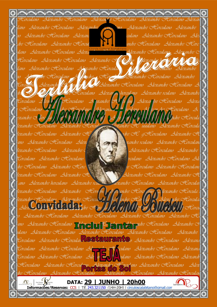 O autor escolhido para mais este excelente serão cultural é Alexandre Herculano e a especialista convidada para a ocasião a Professora Doutora Helena Buescu.