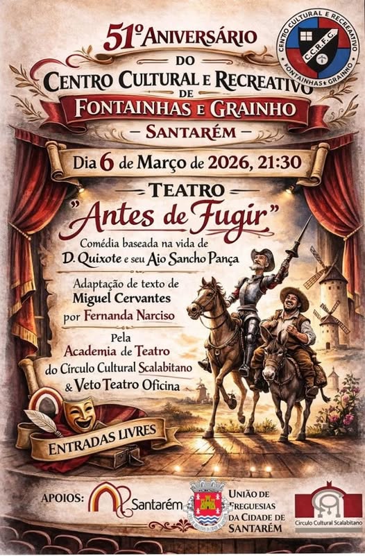 A Convite do Centro Cultural e Recreativo de Fontaínhas e Graínho a ACTO – Academia de Teatro do Círculo e o Veto Teatro Oficina apresentaram neste dia “Antes de Figir ” de Fernanda Narciso num esptáculo integrado nas comemorações do 51.º aniversário deste Centro Cultural. Este trabalho de Fernanda Narciso teve a sua estreia na Gala do Círculo Cultural Scalabitano comemorativa dos seu 70.º aniversário a 18 de dezembro de 2024