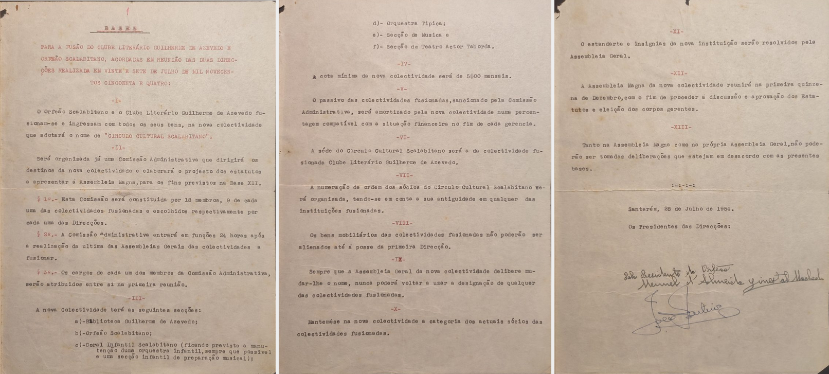 O Orfeão Scalabitano, fundado em 1925, teve uma interrupção de actividades entre 1932 e 1942, embora com direcção autónoma de Grémio Literário, utilizou as instalações deste até 1946, data em que saiu para o Ginásio do Seminário, cedido pelo reitor do Seminário patriarcal. Voltou ao lugar inicial quando se efectivou a fusão dos dois organismos.